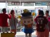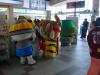 駅構内で小野川温泉女将とユルキャラがつばさの御出迎え。