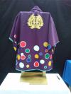 伊達家所用と伝えられている『水玉模様陣羽織』の模造品です。明治時代の伊達家の宝物目録には「紫地羅背板五色乱星」と記されているようです!!