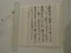 上杉鷹山から上杉斉定(11代藩主)に宛てた書状と考えられます。廊如院は斉定の祖母にあたります。廊如院の病気により、さまざまな評議が滞っていたようで、ちょっと相談したい、といった内容です。文書の左端の紐は、文書の封をする際に使用することから、このような形態の文書を「切封(きりふう)」と呼びます。(展示解説より)