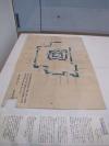 正徳元年7月、米沢城の堀の堆積物を取り除く作業をすることを幕府に申請をした際に提出された絵図。しかし、不備が指摘され、幕府の役人から返却されたものです。堀とともに櫓を記し、堀の幅や侍屋敷、町屋敷も書きこんだ絵図で申請するようにと幕府の指導があったと資料にあります。すなわち、三の丸内の武家町と外の町人町まで描いて、三の丸の堀についてより正確な記入が求められていたと考えられます。それに対して、この絵図は本丸と二の丸の城郭部分はともかく、三の丸の堀は抜き書きされた状態です。米澤藩は絵図を改めて作成し、8月26日に再提出しました。そして、この資料の絵図は不要となりましたが、一度提出しており、問い合わせがあった場合に備えて保管することになり、今に伝わりました。法的な有効性がないことを証明するために藩主の花押が切り取られています、なお、この絵図の裏面にも返却・保管の経緯が記されています。(展示解説より)